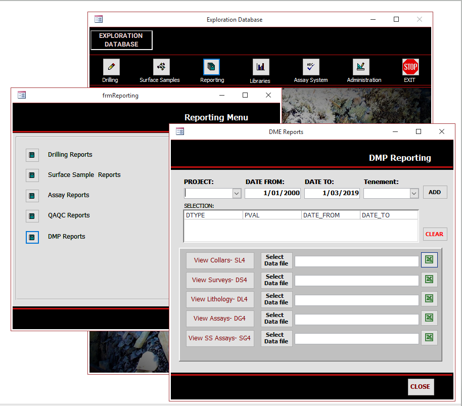 Over recent years I have developed the following modules in MS Access that can be used to build a comprehensive database model for Minesites and Exploration Companies.